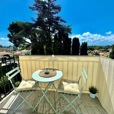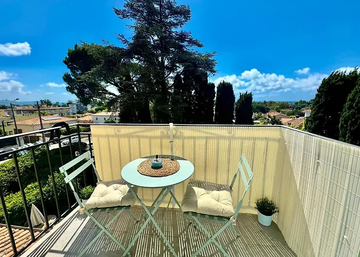 Apartmán Studio Cosy A 5 Min De La Mer nabízí kuchyňku i pokoje s balkónem, pohovkou a TV s plochou obrazovkou se satelitními kanály. Apartmán je vzdálen 3 km od Château-Musée Grimaldi a 2 km od Musée Escoffier de l'Art Culinaire.